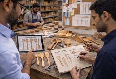 Saim Overseas is a reliable wooden handicraft sourcing and export company in India, supplying mango wood kitchenware, wooden home décor, and customized wooden products to international importers, wholesalers, and private label brands.