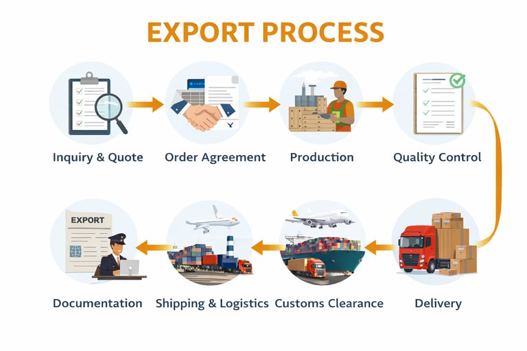 • Quotation: Includes pricing, MOQ, lead time, and Incoterms (EXW/FOB/CIF/DDP).